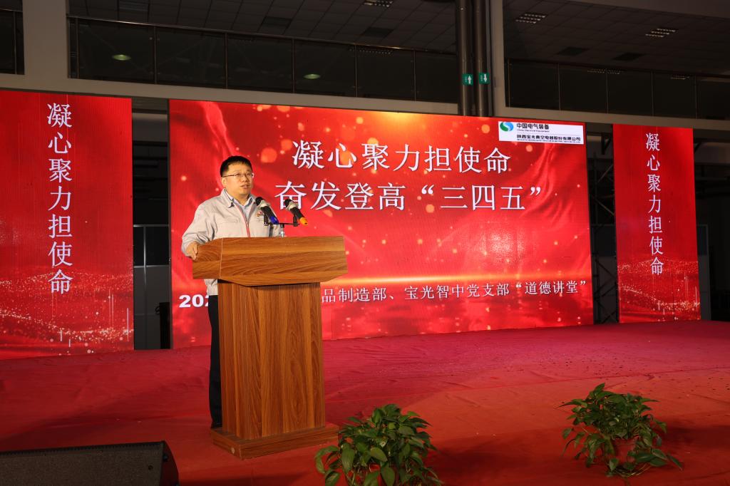 為提升廣大職工思想道德修養(yǎng),扎實(shí)推進(jìn)企業(yè)精神文明建設(shè),進(jìn)一步激發(fā)廣大干部職工齊心協(xié)力、干事創(chuàng)業(yè)、勇拓新局的信心和決心,以?xún)?yōu)異成績(jī)完成“十四五”登高目標(biāo),12月8日下午,由寶光股份黨委主辦,滅弧室產(chǎn)品制造部黨支部、寶光智中公司黨支部聯(lián)合承辦的“凝心聚力擔(dān)使命,奮發(fā)登高‘三四五’”道德講堂活動(dòng)順利舉行。寶光股份黨委書(shū)記、董事長(zhǎng)謝洪濤,寶光股份黨委副書(shū)記、總經(jīng)理劉壯出席會(huì)議并作點(diǎn)評(píng)講話(huà)。