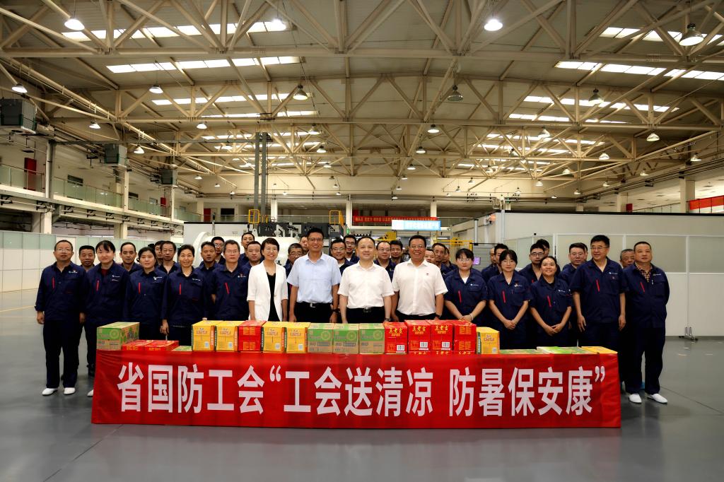 靳海斌一行來公司慰問職工“送清涼”,帶來了省國防工會(huì)的關(guān)懷和厚愛,一聲聲親切貼心的問候,一句句熱情洋溢的話語,一份份貼心的清涼用品,讓在場的一線職工深切感受到上級(jí)工會(huì)組織的關(guān)心與問候,讓職工們感受到了“娘家人”的溫暖。