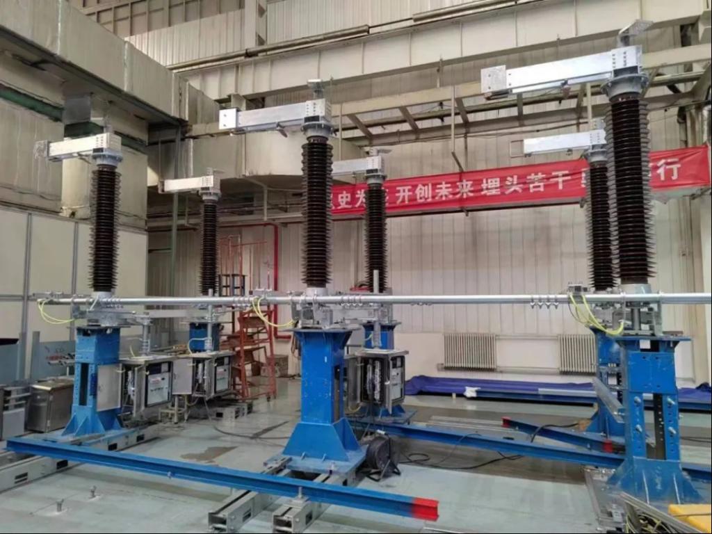 由西開電氣為烏海敖瑞500千伏輸變電項(xiàng)目安裝的7個(gè)間隔550kVGIS和7個(gè)間隔220kV HGIS一次性通過工頻耐壓試驗(yàn)。烏海敖瑞500千伏輸變電工程位于內(nèi)蒙古自治區(qū)巴彥淖爾市烏拉特后旗獲各琦蘇木境內(nèi),是內(nèi)蒙古自治區(qū)首批沙、戈、荒新能源大基地重點(diǎn)建設(shè)項(xiàng)目。為確保優(yōu)質(zhì)高效完成該項(xiàng)目安裝任務(wù),項(xiàng)目團(tuán)隊(duì)積極溝通施工方,制定詳細(xì)切實(shí)可行的安裝計(jì)劃,動態(tài)實(shí)施全過程質(zhì)量監(jiān)督和預(yù)控管理,積極克服蒙西地區(qū)低溫寒冷風(fēng)沙大的極端天氣,主動發(fā)揚(yáng)“特別能吃苦、特別能戰(zhàn)斗、特別能奉獻(xiàn)”的優(yōu)良傳統(tǒng),全力搶抓施工進(jìn)度,助力敖瑞500千伏輸變電工程順利投產(chǎn)。