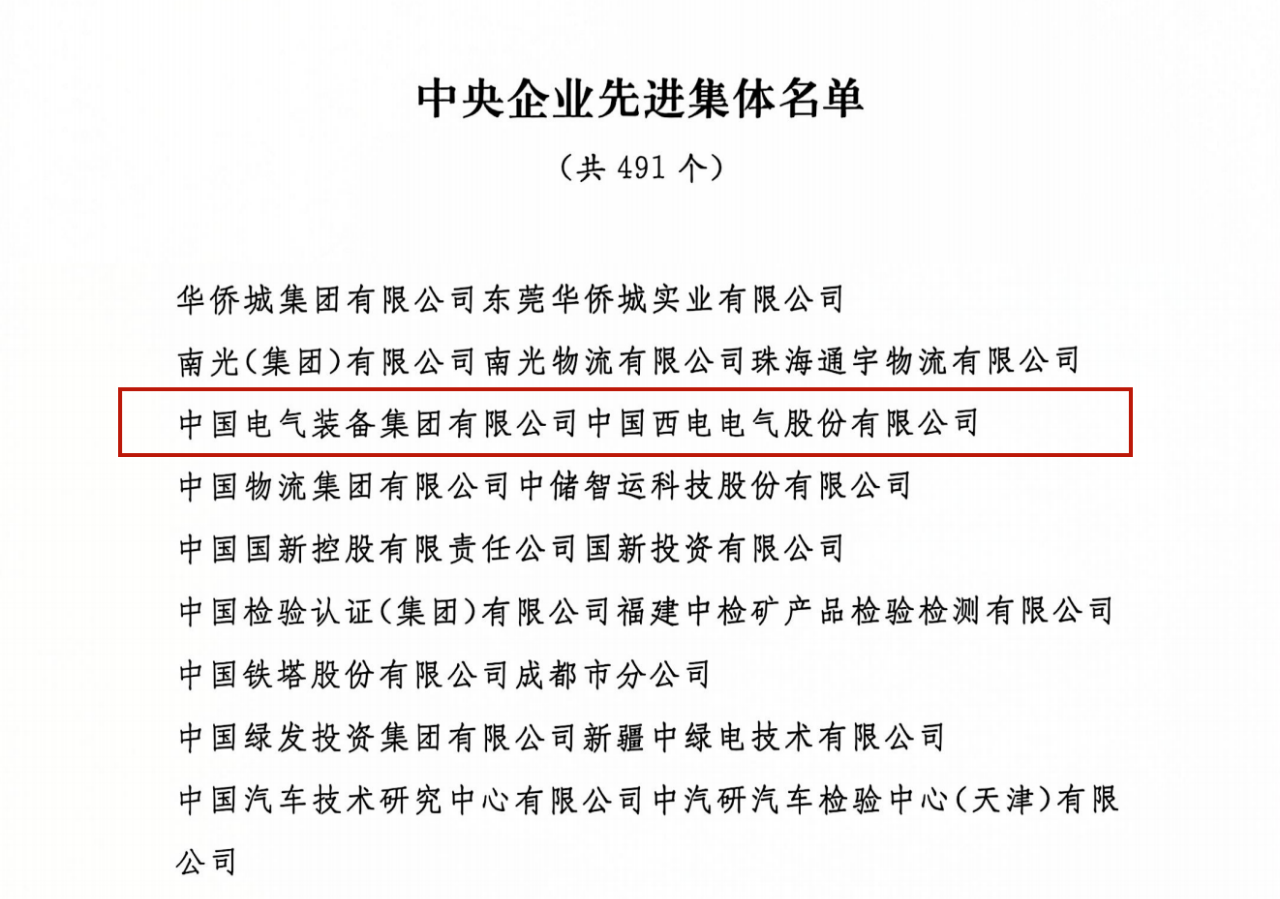 中國西電榮獲“中央企業(yè)先進集體”榮譽稱號!