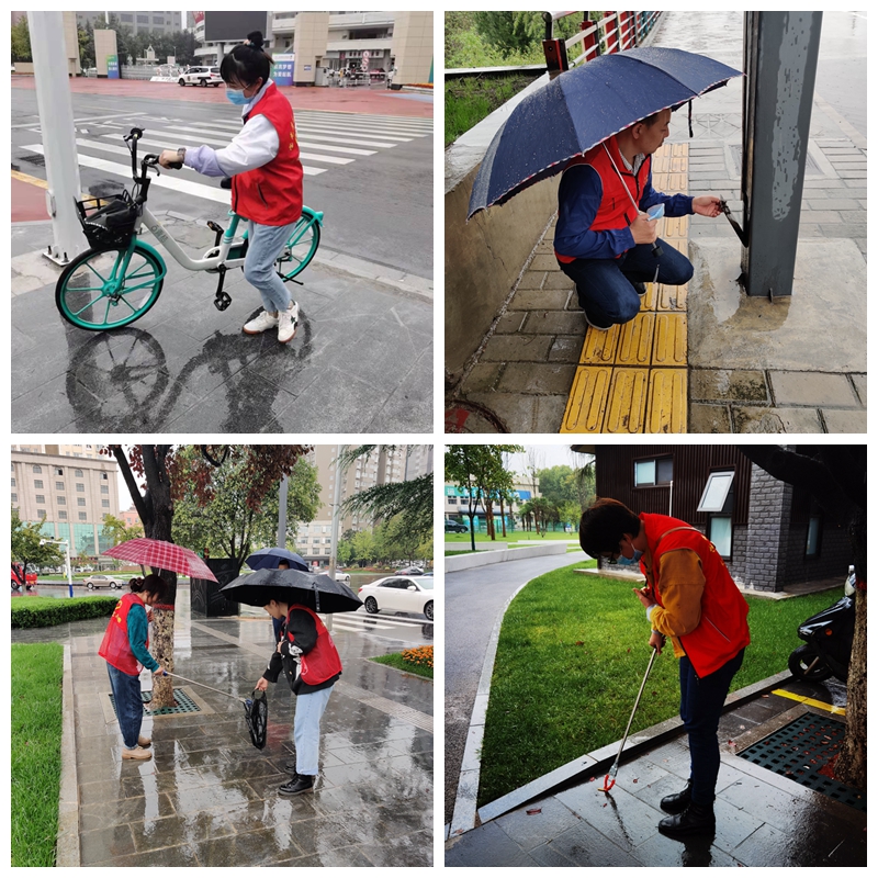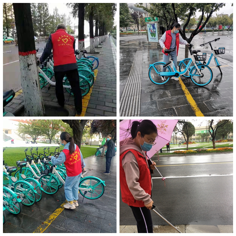 在近日連續(xù)強(qiáng)降雨的天氣里,志愿者們風(fēng)雨無阻每天早上堅(jiān)持7:30按時(shí)到崗開展志愿服務(wù)活動(dòng)。他們身穿紅馬甲,手拿垃圾夾,冒雨沿著金渭大橋南至寶光路轉(zhuǎn)盤巡回開展志愿活動(dòng),認(rèn)真地清理路面上的碎紙屑、飲料罐、煙頭等垃圾。同時(shí)將共享單車擺放在規(guī)定的區(qū)域內(nèi),保持整齊美觀和人行道路的通暢。
