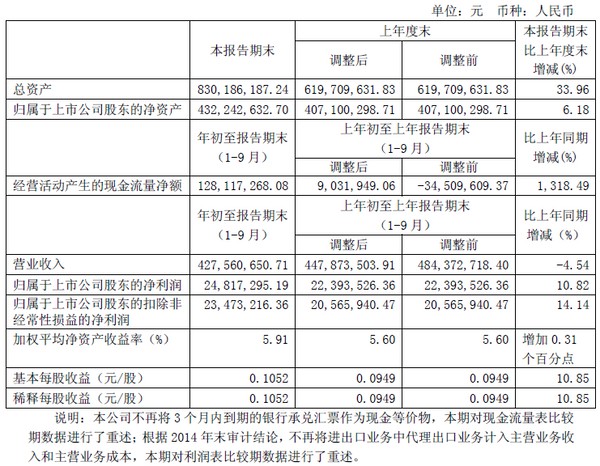 寶光股份2015年3季度主要財務(wù)指標(biāo)